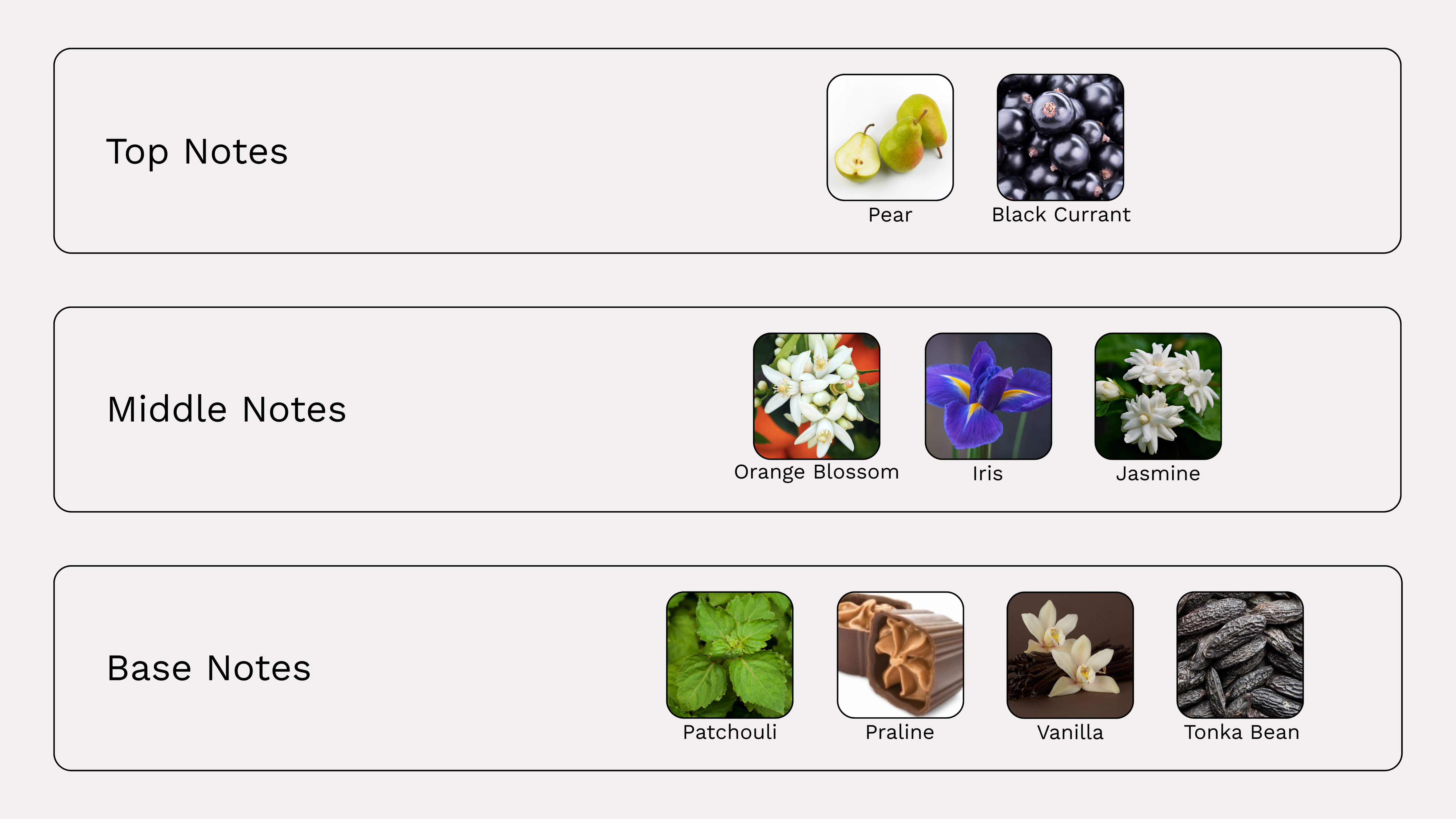 A delectable blend of creamy sweetness and soft florals, this fragrance opens with the juicy brightness of black currant and pear. At its heart, a refined trio of iris, jasmine, and orange blossom lends a powdered elegance, while a gourmand base of praline, vanilla, and tonka bean is grounded by earthy patchouli. The result is a warm, addictive scent with both playful charm and velvety depth.